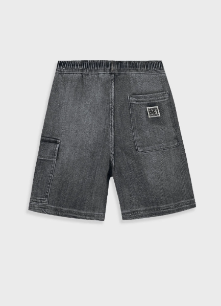 Τζιν βερμούδα μαλακό ύφασμα με λάστιχο και τσεπούλα κάργκο σε ξεβαμμένο μαυρο χρώμα.