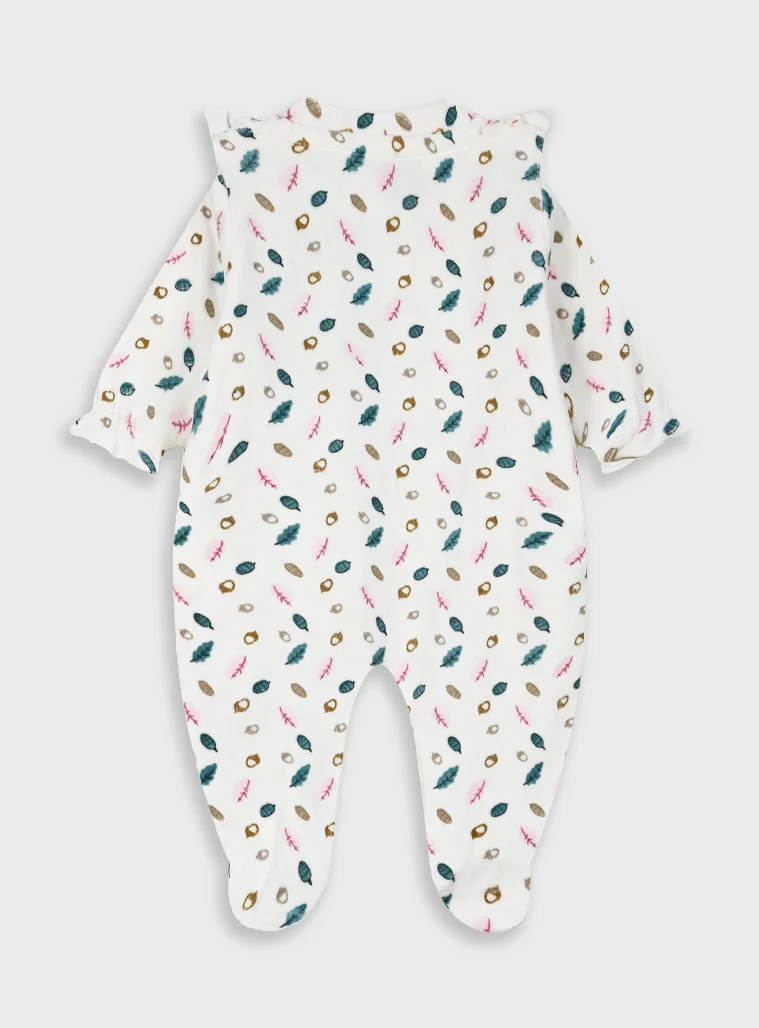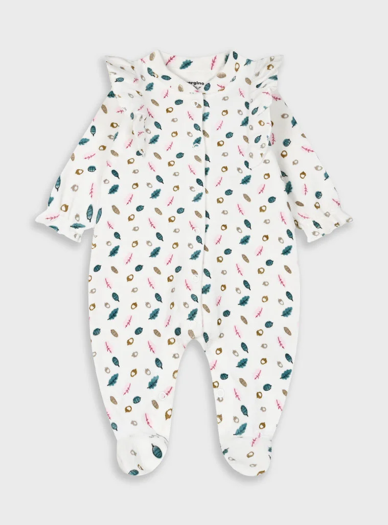 Βρεφικό βελουτέ φορμάκι με εμπριμέ σχέδιο και φραμπαλά για κορίτσι (0 – 15 μηνών), για τις άνετες καθημερινές σας εμφανίσεις.