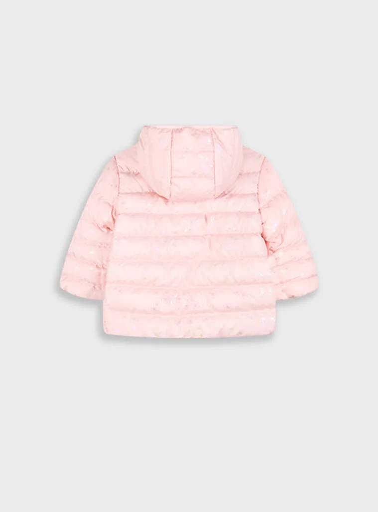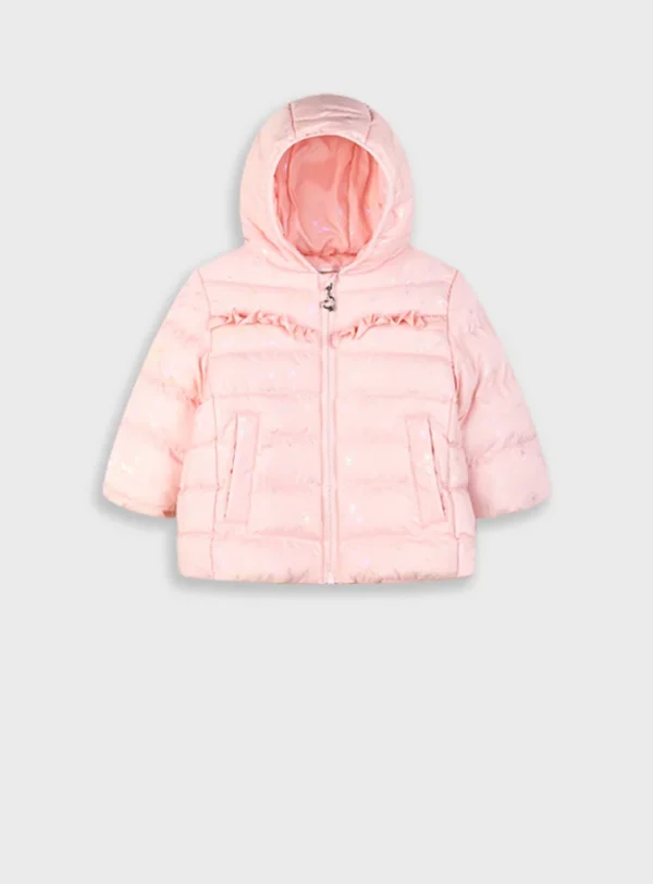 Βρεφικό καπιτονέ μπουφάν με κουκούλα και φραμπαλά για κορίτσι (6 μηνών – 3 ετών), για τις απογεμυατινές σας βόλτες.