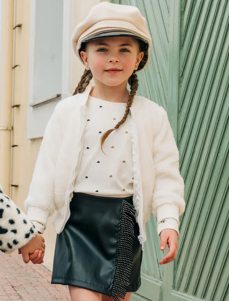 Απογειώστε το στυλ της μικρής σας, με αυτή τη δερματίνη φούστα για κορίτσι, που οι ιδιαίτερες λεπτομέρειες θα την κάνουν να ξεχωρίσει!