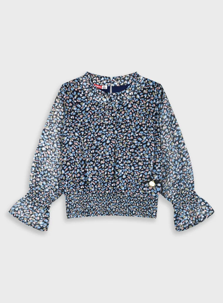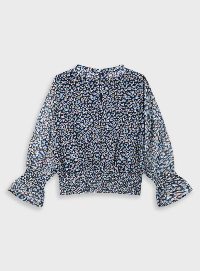 Εμπριμέ μπλούζα με φραμπαλά