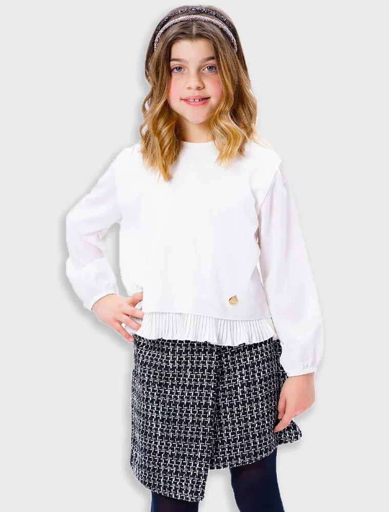 Σετ μπλούζα με κέντημα με κολάν και κορδέλα