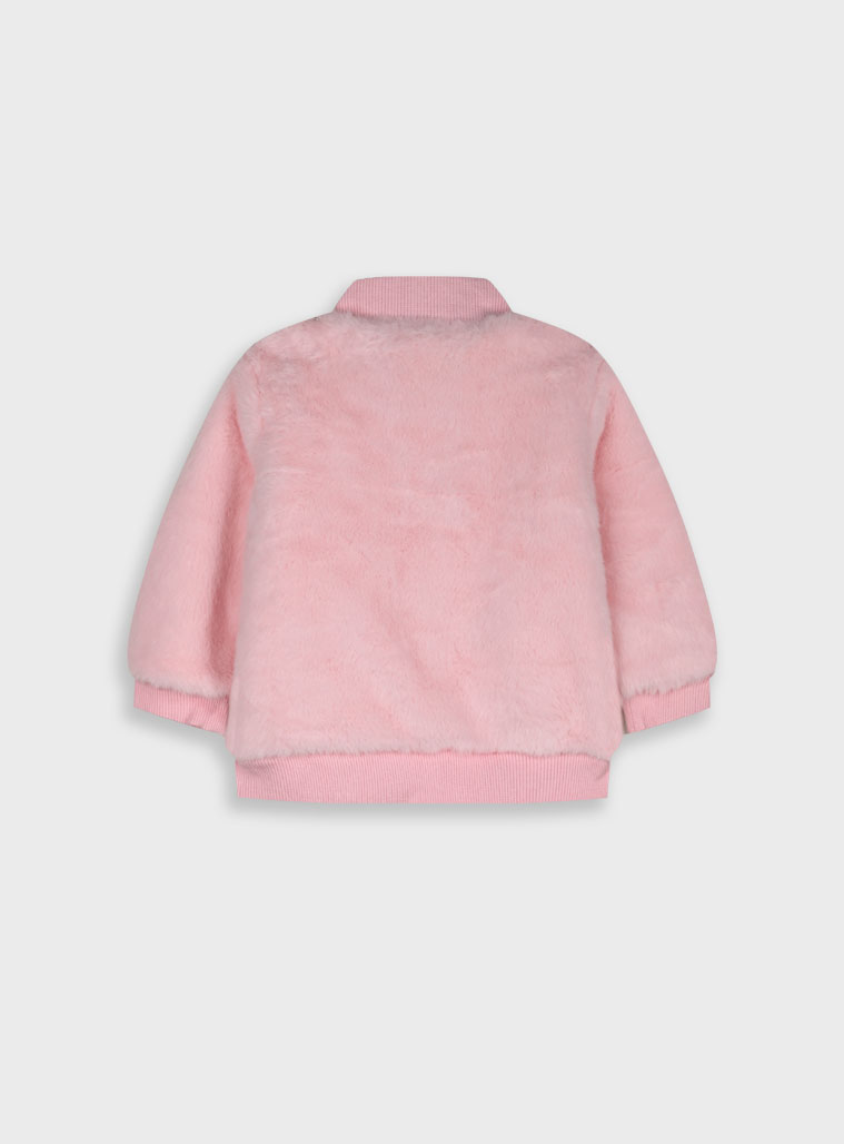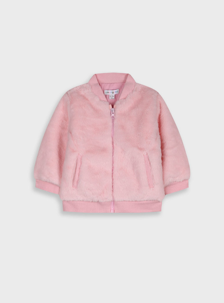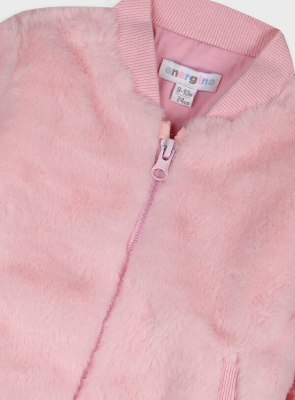 βρεφική ζακέτα σε ρόζ απόχρωση σε ύφασμα προβατάκι , μαλακή και ζεστή.