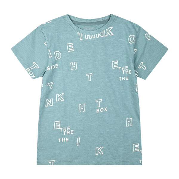 Κοντομάνικη Εμπριμέ μπλούζα σε τιρκουαζ απόχρωση για αγόρι.