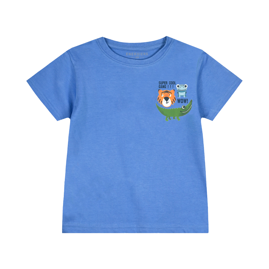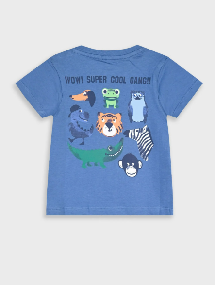 Κοντομάνικη μπλούζα σε μπλε απόχρωση με σχέδια ζωάκια στη πλάτη