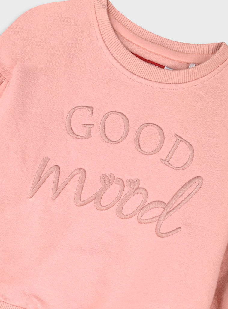 Ζεστή αλλά και στιλάτη μπλούζα σε σομόν χρώμα με γράμματα για κορίτσι 1 ως 7 ετών