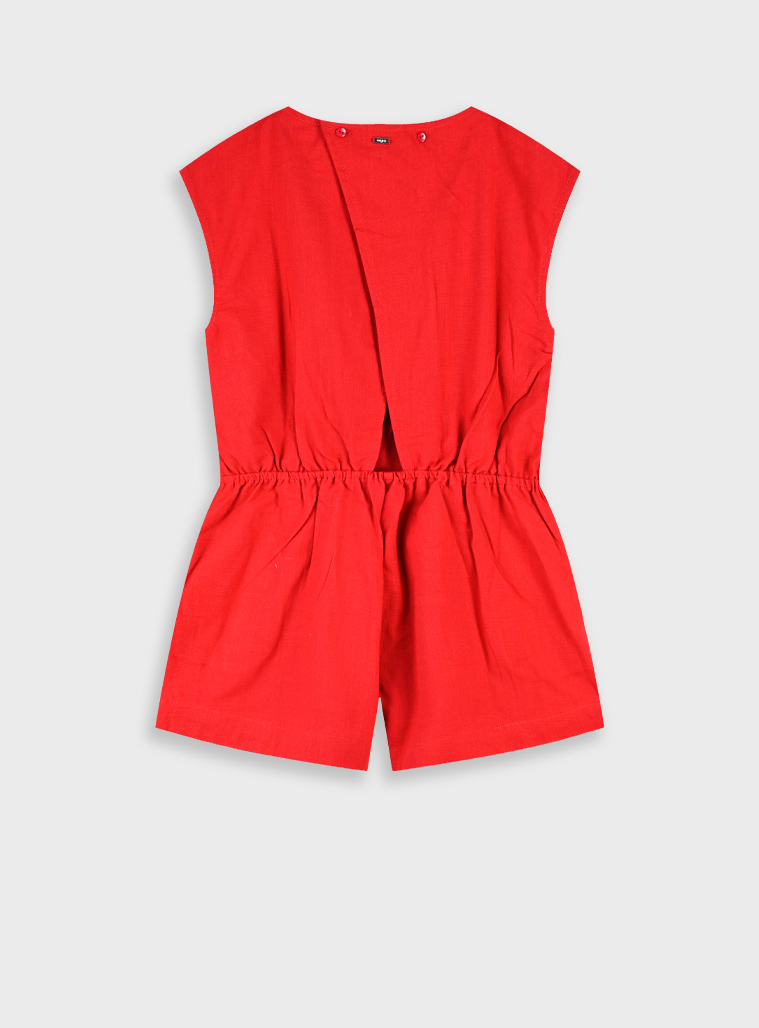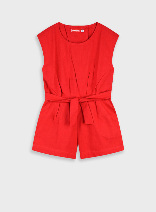Ολόσωμη φόρμα με σορτσάκι , κοντομάνικο και ζώνη στη μέση σε ένα υπέροχο κόκκινο χρώμα, στέκεται σε κάθε περίσταση , η μικρή σου θα είναι καλοντυμένη αλλα και άνετη.