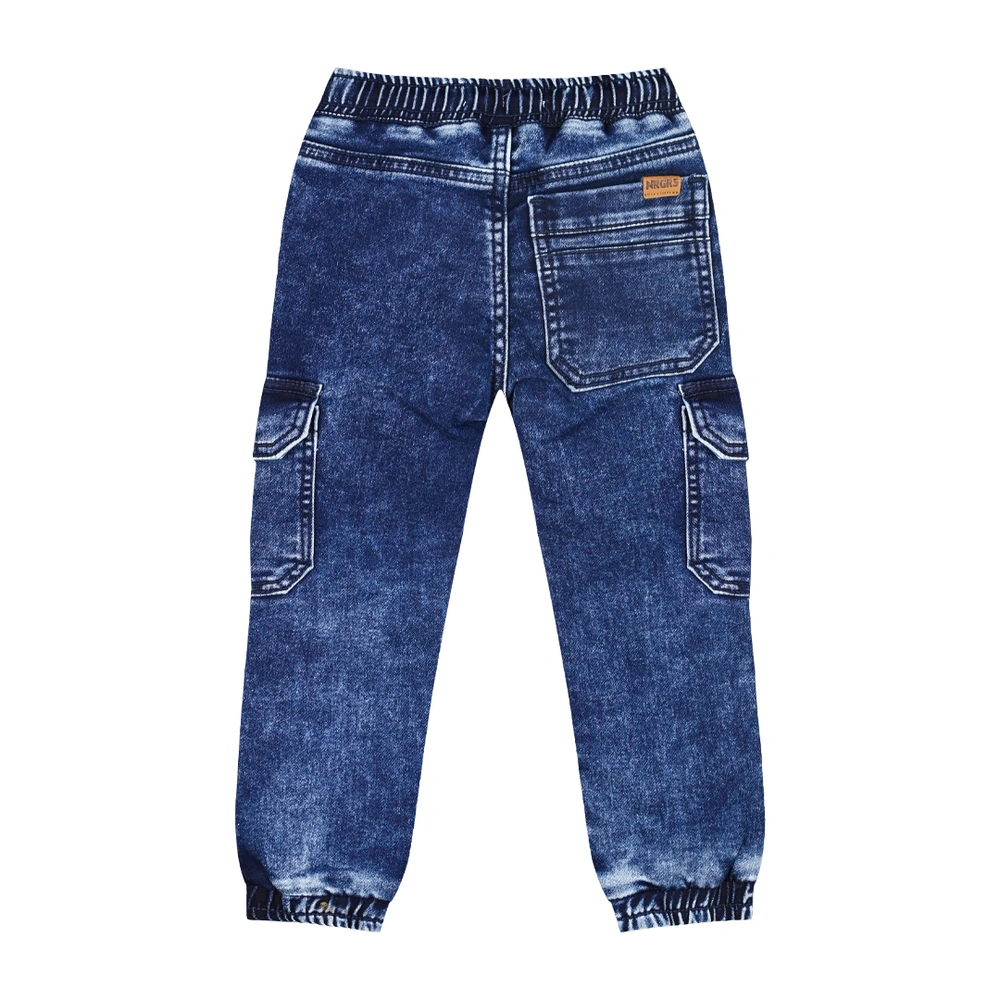 Τζην παντελόνι casual στυλ, με κάργκο τσέπες και λάστιχο στη μέση και στο τελείωμα