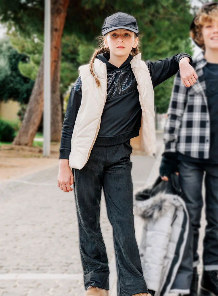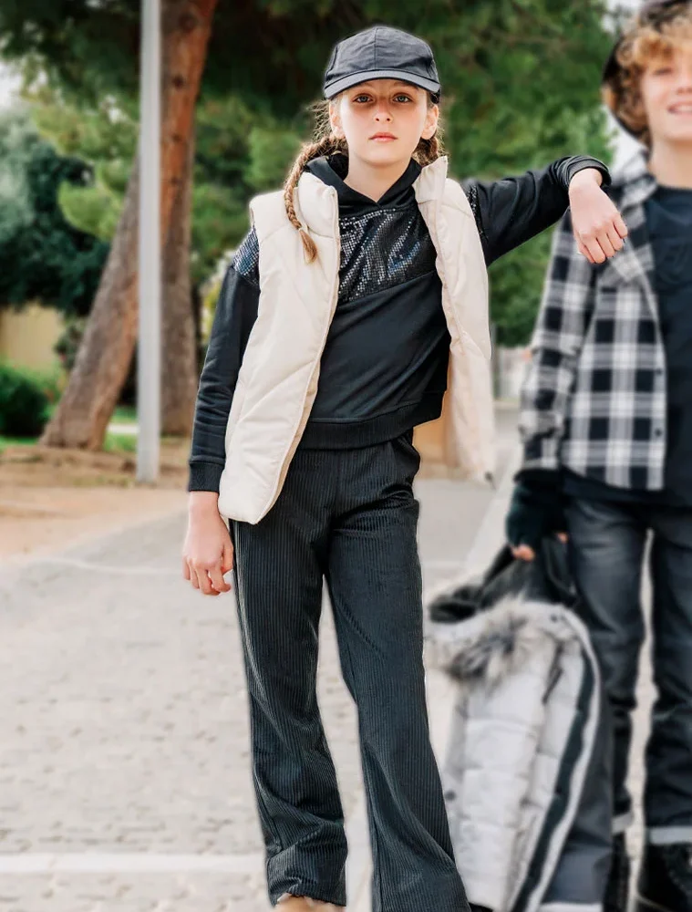 Παιδικό κολάν καμπάνα για κορίτσι από ριπ ύφασμα. Άνετη και μοδάτη επιλογή για όλες τις ώρες.