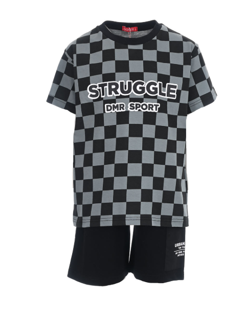 Καλοκαιρινό σετάκι με μαύρη βερμούδα και καρρώ μπλούζα για αγόρι