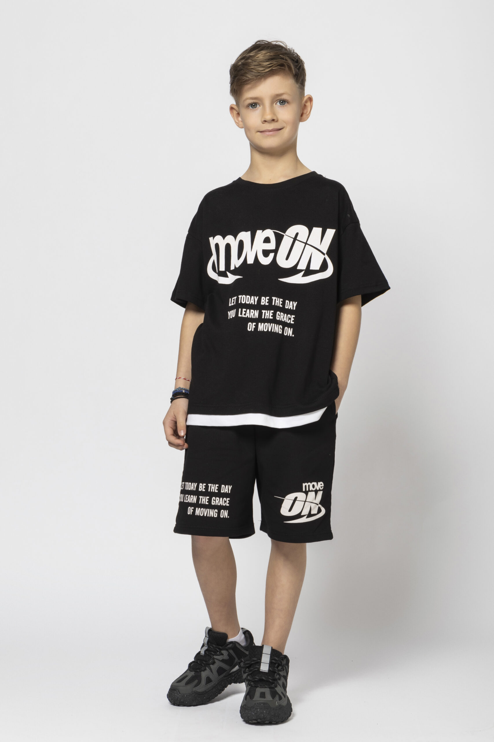 Καλοκαιρινό σετάκι με βερμούδα για αγόρι σε μαύρο χρώμα με λευκές λεπτομέρειες.