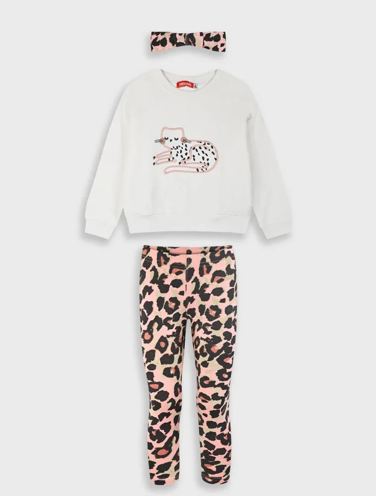Σετ φούτερ μπλούζα με κέντημα με λεοπάρ κολάν και ασορτί κορδέλα για κορίτσι! Ένα ολοκληρωμένο σετ για να ξεχωρίσει σε κάθε της εμφάνιση!