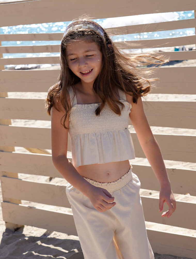 Σετ μπλούζα με κέντημα με κολάν και κορδέλα