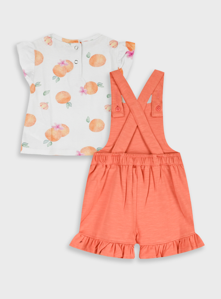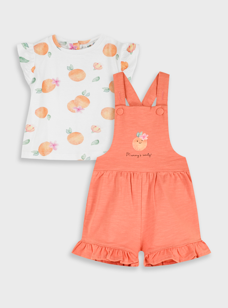 Σετ εμπριμέ κοντομάνικη μπλούζα συνδιασμένη με μια πορτοκαλί άνετη σαλοπέτα με τύπωμα για βρεφικό κορίτσι (0 μηνών -18 μηνών)