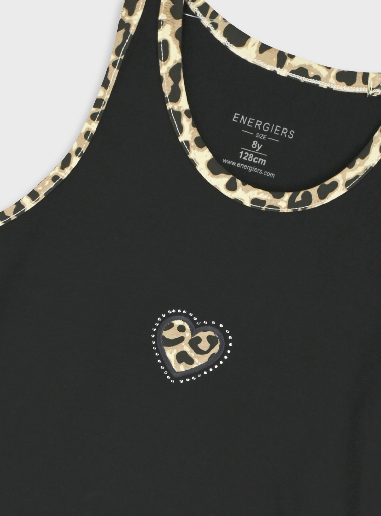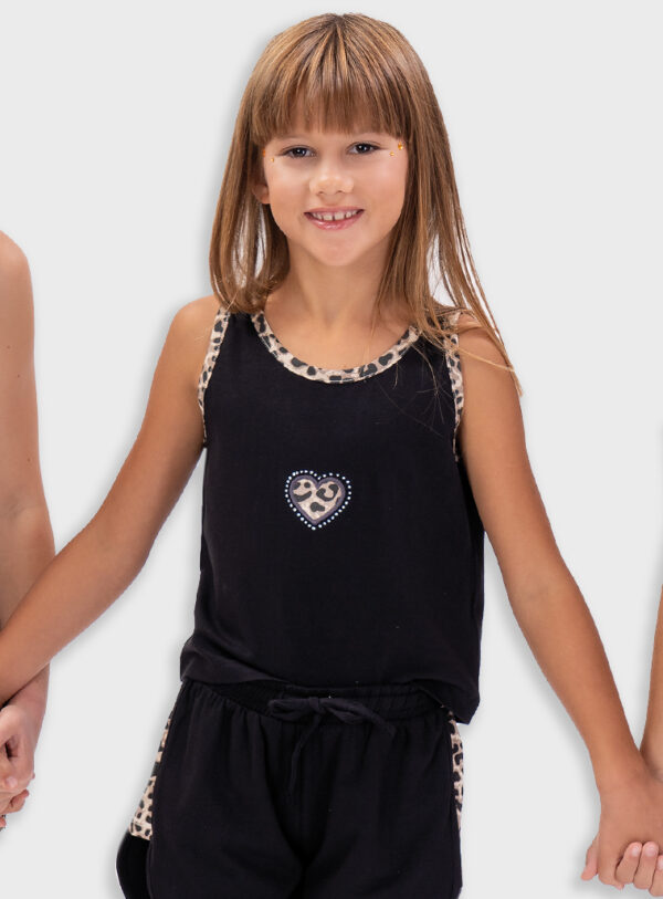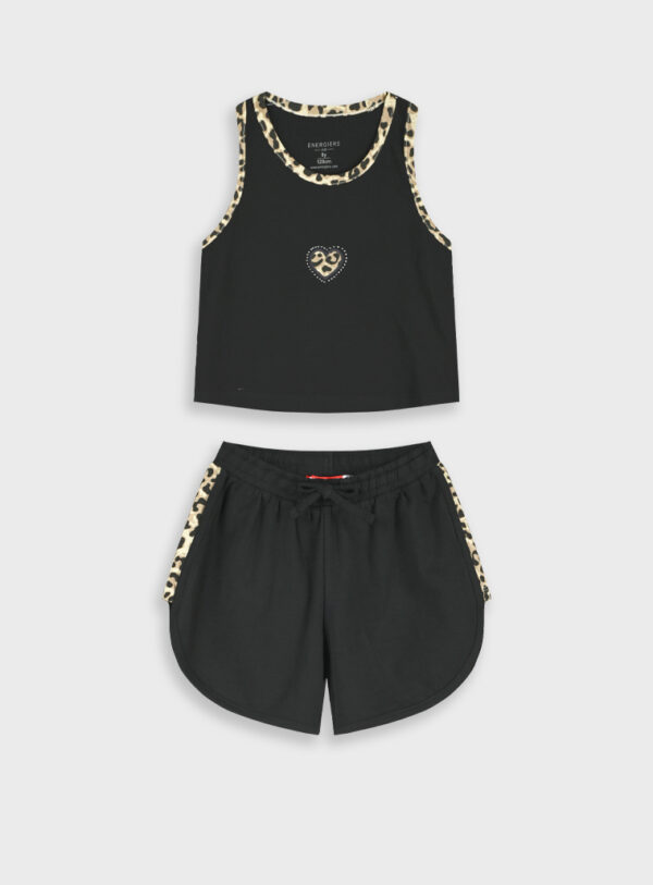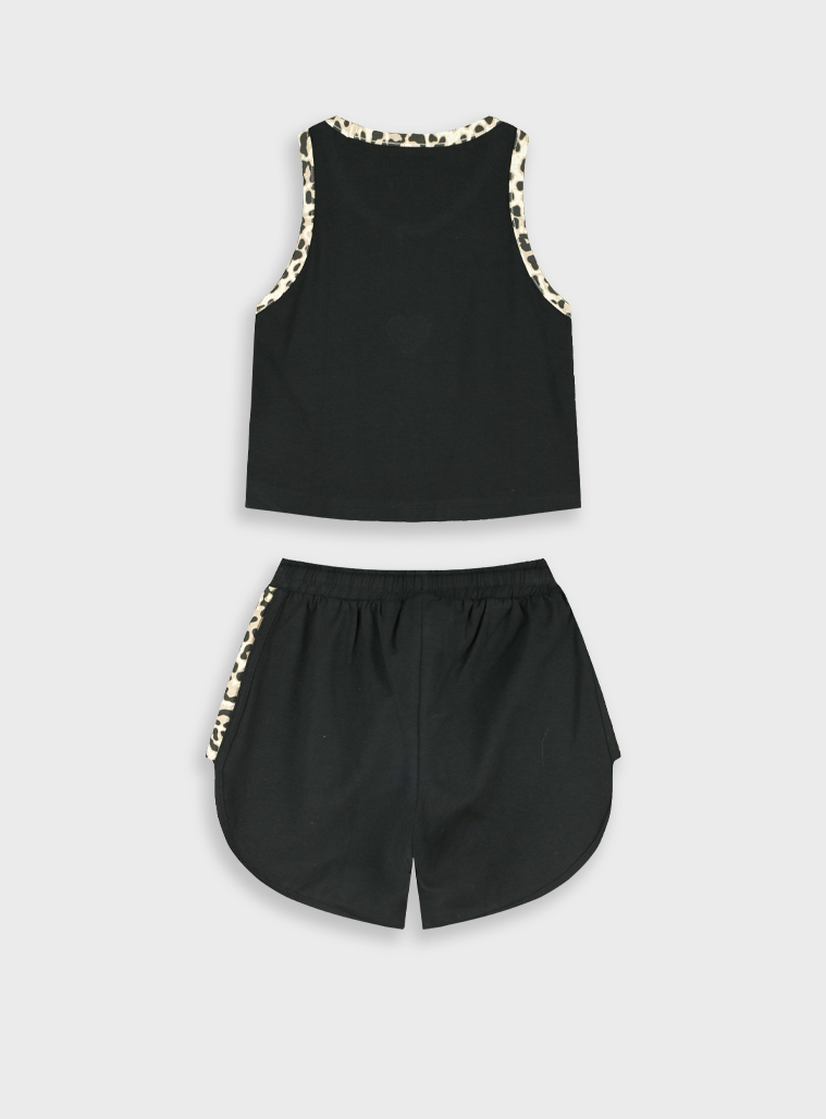 Καλοκαίρινό σετάκι σορτκάκι και αμάνικη μπλόυζα σε μάυρο χρώμα με λεοπάρ λεπτομέρειες.