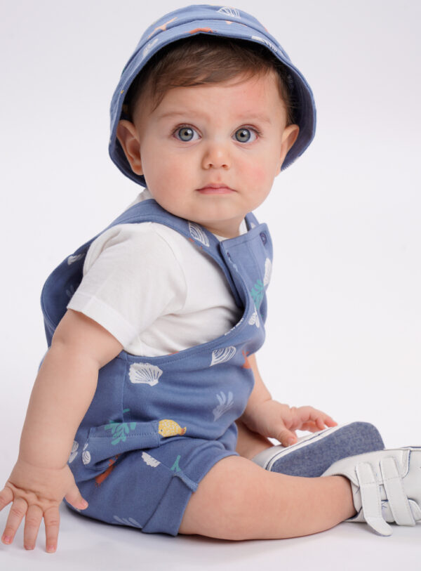 βρεφικό Σετ 3 τεμαχίων με κορμάκι, εμπριμέ σαλοπέτα και ασορτί καπέλο. ένα ολοκληρωμένο και cute σύνολο (0 – 15 μηνών)