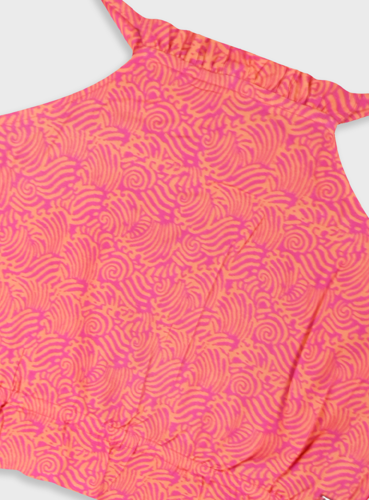Ένα καλοκαιρινό , αέρινο άνετο και στυλάτο σετάκι σε πορτοκαλί απόχρωση με μώβ λεπτομέρειες ο τέλειος καλοκαιρινός συνδυασμός .παντελόνα σε ανοιχτή γραμμή και άνοιγμα στο κάτω μέρος συνδιασμένη με τοπάκι με λάστιχο , ιδανικό για κάθε περίσταση , δεν πρέπει αυτό το σέτ να λείπει απο την ντουλάπα τηες μικρής σου.