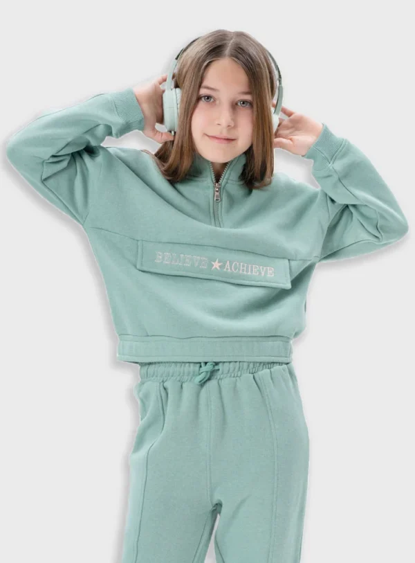 Παιδική φόρμα για κορίτσι, με φερμουάρ στο γιακά και κέντημα στο μπροστινο μέρος της μπλούζας. Άνετη και μοδάτη, είναι η τέλεια επιλογή για κάθε της εμφάνιση