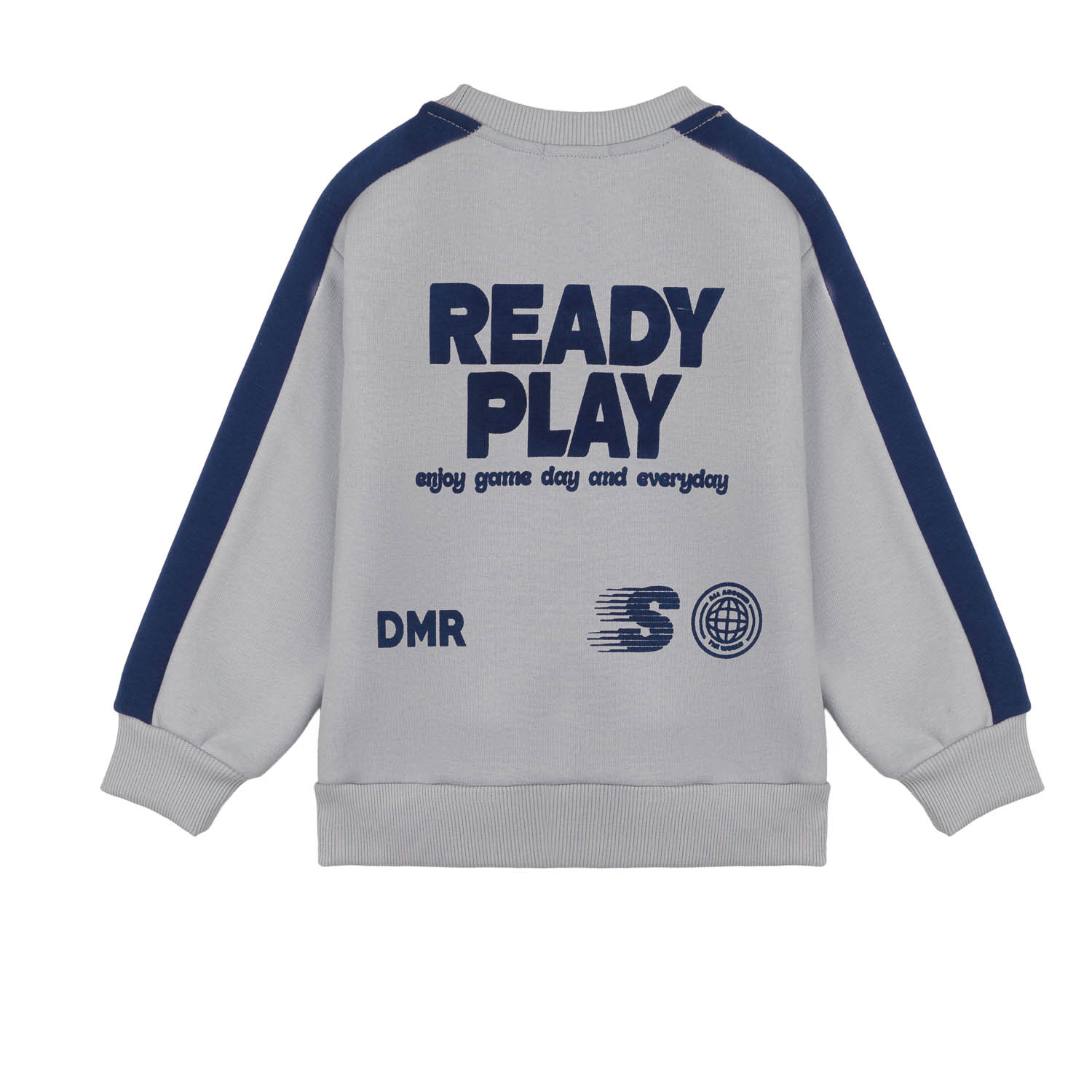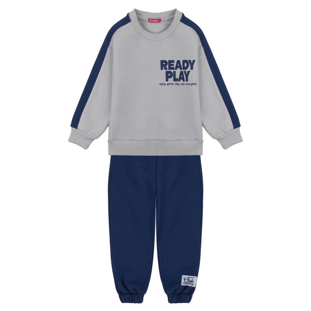 Χοντρή φόρμα σετ για αγόρι, φλίς επένδυση δίχρωμο σετ σε γκρί και σκούρη μπλέ απόχρωση με τύπωμα μπροστά αλλά και στη πλάτη.