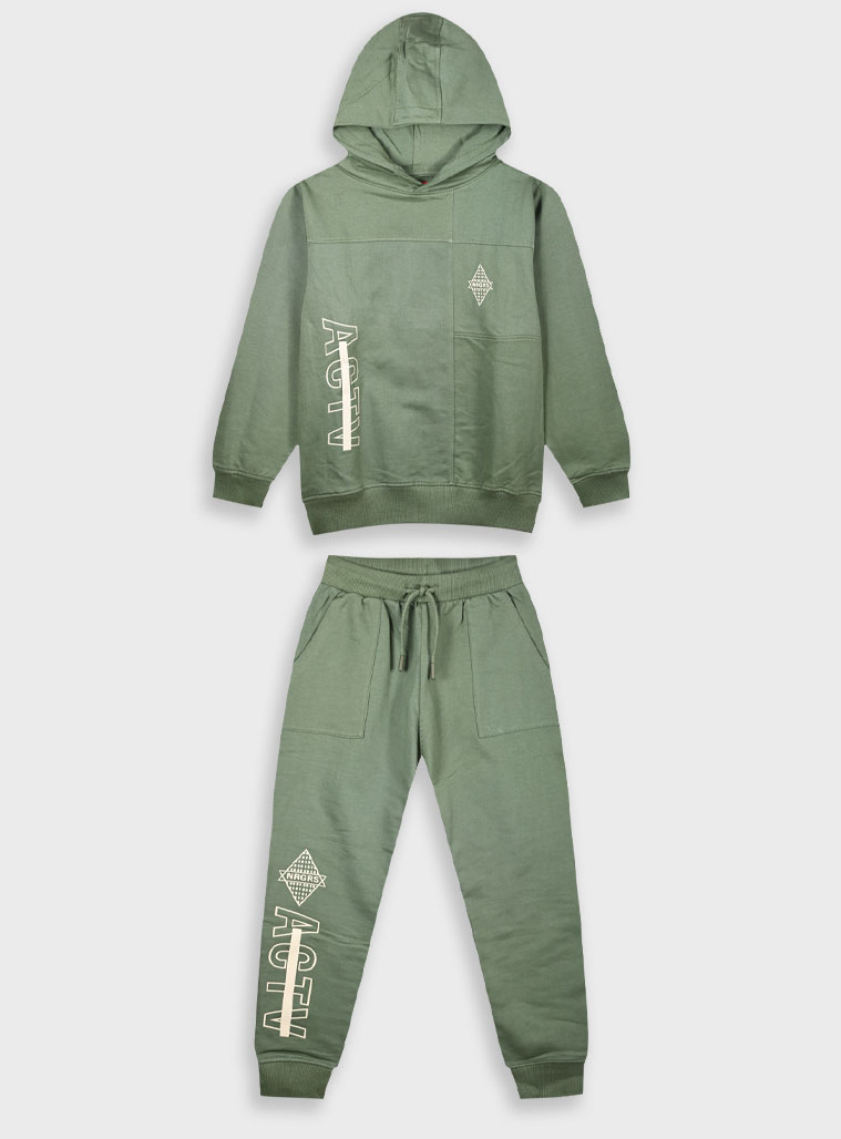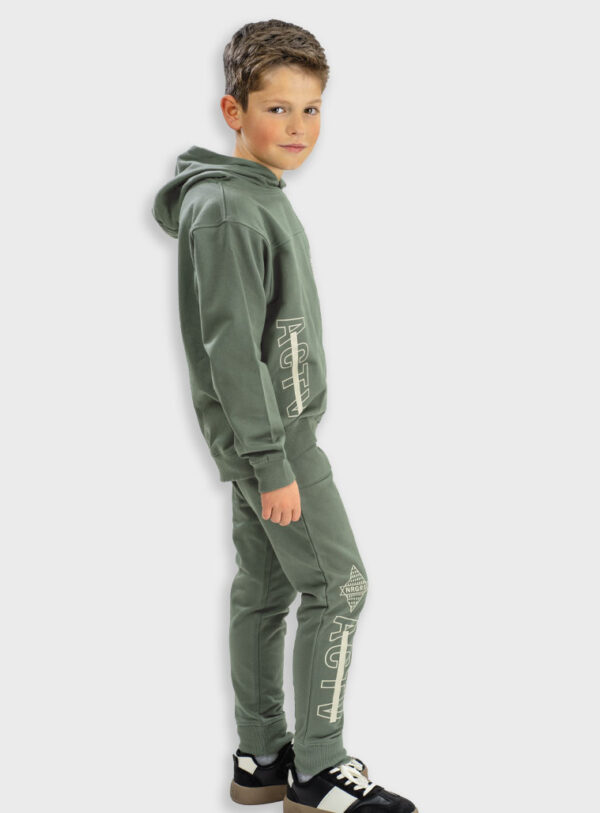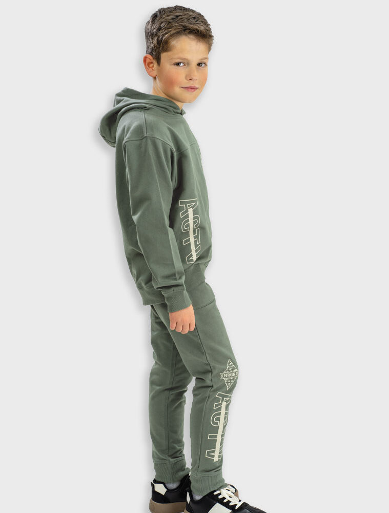 Αχνούδωτο σετ φόρμες για αγόρι με κουκούλα και τύπωμα στη μπλούζα και στο παντελόνι.