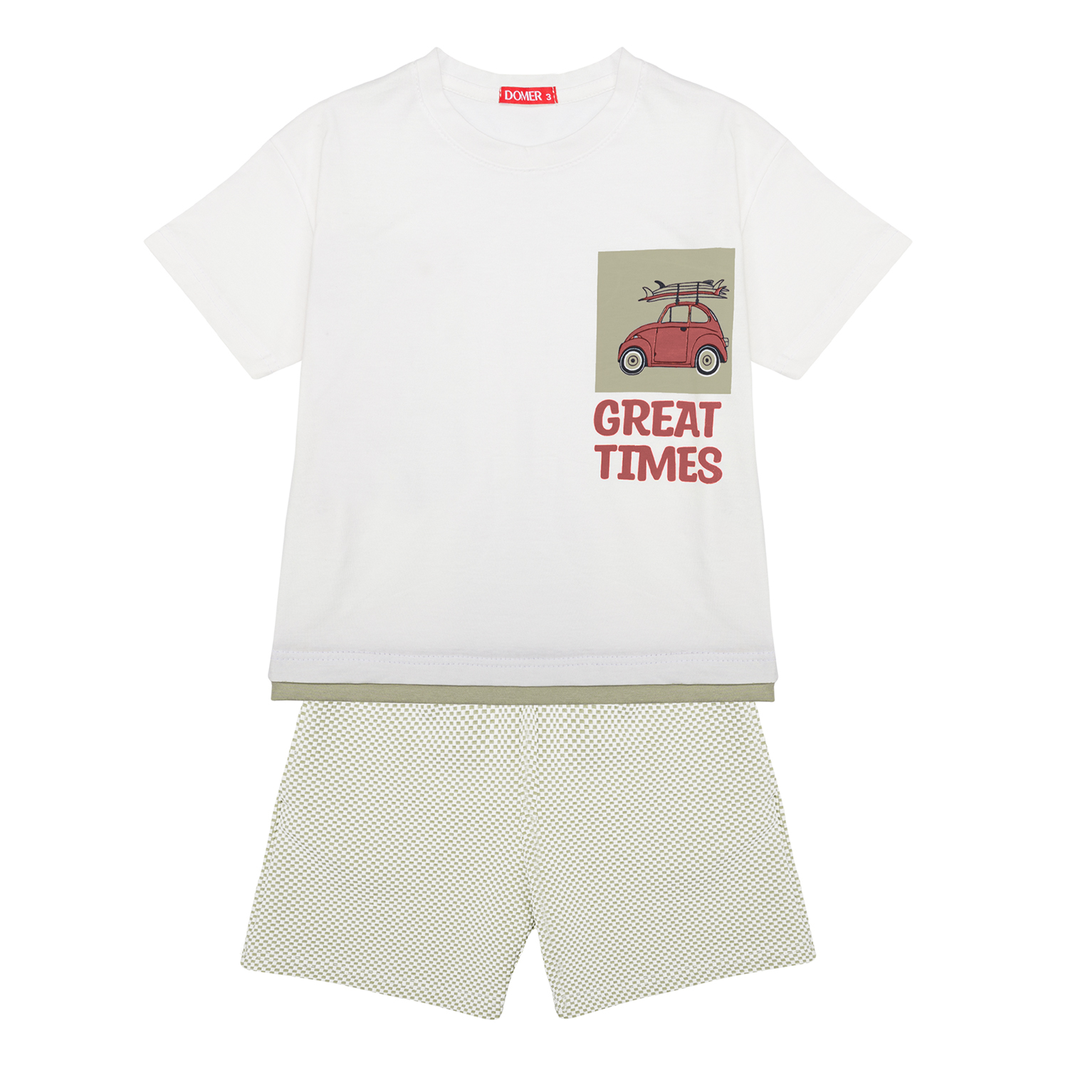 Σετ για αγόρι με καρρώ βερμούδα και λευκή κοντομάνικη μπλούζα με τύπωμα