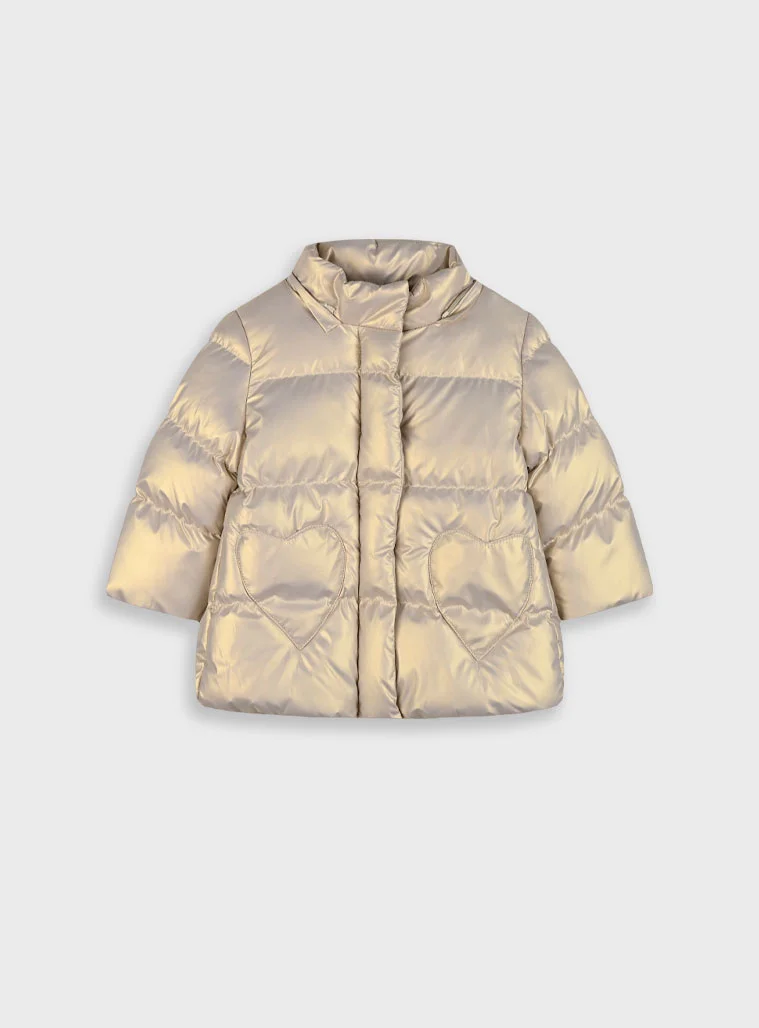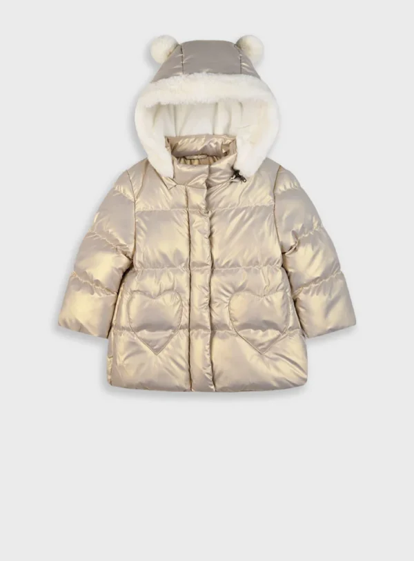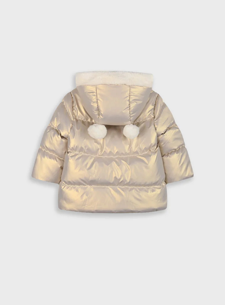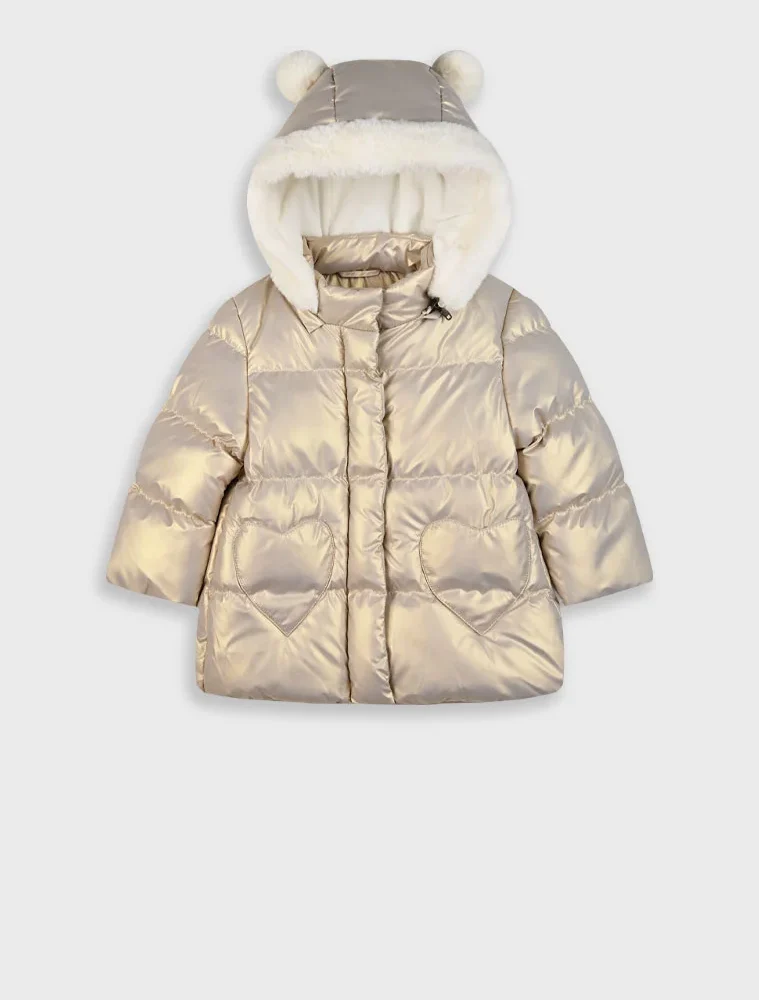 Τζάκετ μεταλιζέ με αποσπώμενη κουκούλα για βρεφικό κορίτσι,θα κρατήσει ζεστό το μωρό σας σε κάθε χειμωνιάτικη έξοδο. Boutique collection.