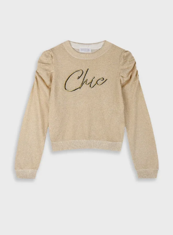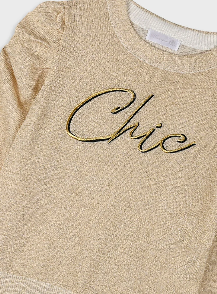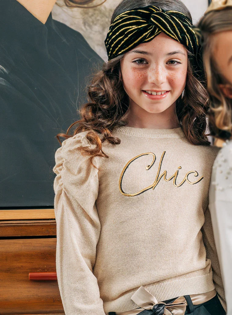 Boutique πλεκτή μπλούζα με χρυσό τύπωμα για κορίτσι! Η απόλυτη επιλογή για μία λαμπερή εμφάνιση