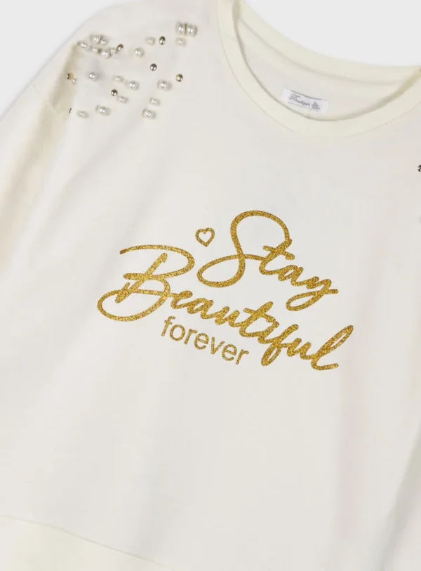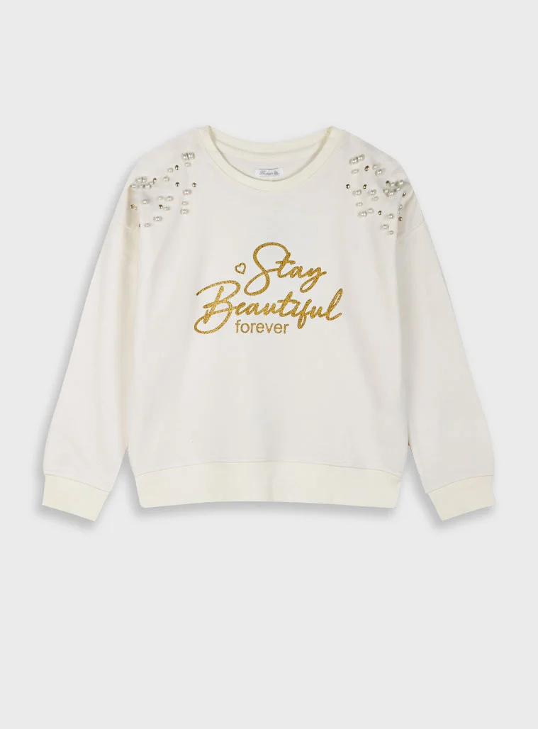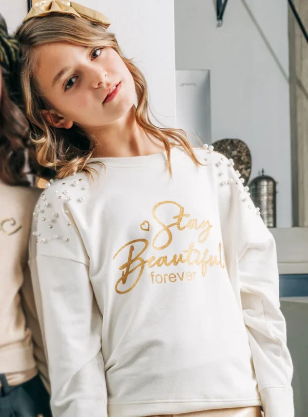 Boutique φούτερ μπλούζα με πέρλες στους ώμους και γκλίτερ τύπωμα για κορίτσι! Με αυτές τις λεπτομέρειες σίγουρα η μικρη σας θα αισθάνεται σαν πραγματική σταρ